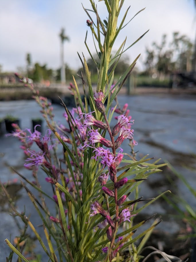 Blazing Star Dense, Liatris spicata ? Gorgeous fall bloomer with lavender spikes, well-loved by pollinators. Dies back after bloom in the winter to reemerge in the spring. Interesting foliage. ? Wildflower ? Florida Native, Perennial ? 1 Gal ? Sun ? Average ? Native